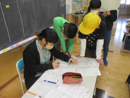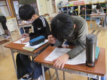 1時間目の6年生は算数の授業でした。今日の学習は、これまでに習ってきた平面図形の面積を求めるまとめの内容です。それぞれが1つずつの課題に合格しながら、次々に学習を進めていきます。