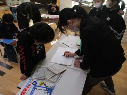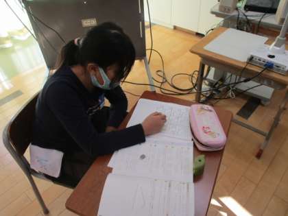 今年度も後半に入り、朝の「さわやかタイム」は体育から学習に代わりました。3年生の教室では、この時間を使って算数の練習をしていました。2桁×1桁の筆算です。途中に繰り上がりのある計算ですから、前より内容が複雑になってきています。