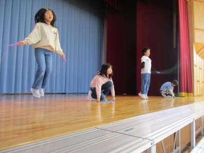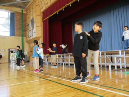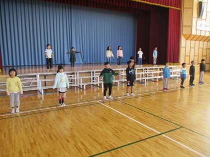 2年生は2時間目に、明日の発表会に向けた練習を行いました。もう体育館を使っての練習もそんなにできませんので、この時間に集中して演技を仕上げます。