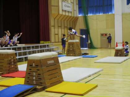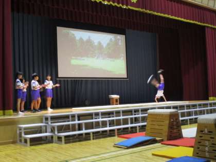 みんなの力を合わせ取り組んだ結果、二酸化炭素の発生をかなり減らせました。また、発表の後半には、体育で取り組んだマットの演技を取り入れました。