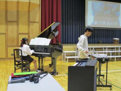 本日のトリは、プログラム6番・6年生の「朗読『宮沢賢治の世界』〜私たちが共に生きるということ〜」でした。この朗読には、音楽の時間に作曲した曲を流しました。