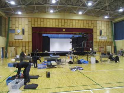 今日は午後からの鑑賞なのですが、写真の通り、朝早くから体育館では本格的な準備が進められていました。