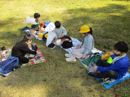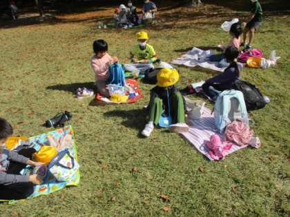 全員集合の後、いよいよお弁当です。みんなニコニコ顔がいっぱいです。