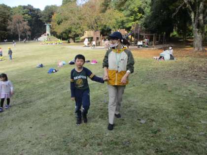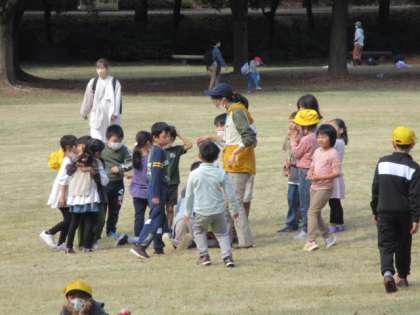 先生も遊びに参戦です。鬼ごっこの鬼です。もしかして捕まえられたのでしょうか。