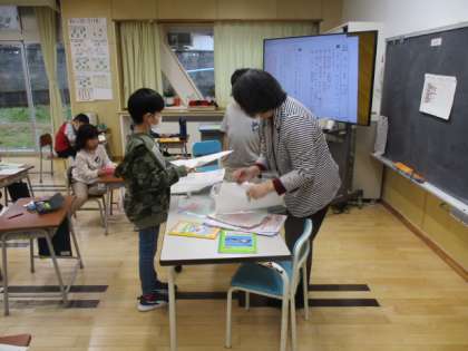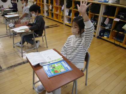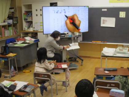 1時間目の2年生は、国語の授業でした。学習していた内容は「丸・点・かぎ」で、文章の中にそれぞれをどう使っていくかを考えていました。