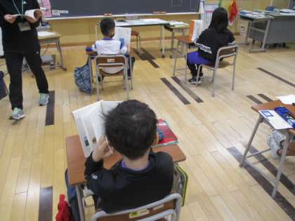 1時間目の3年生は、国語の授業でした。教科書の「すがたをかえる大豆」というところの学習を進め始めたところで、文章に段落の番号を付け、読みを進めていました。