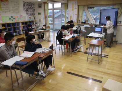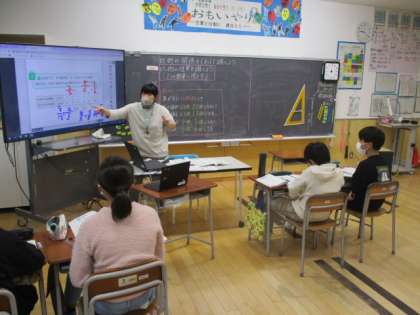 1時間目の6年生は、算数の授業でした。今学習を進めているのは「比例」の内容です。今日の学習では、Xがいくつ増えた時にYがいくつ増え、それらの割合が変わらないことを学びました。