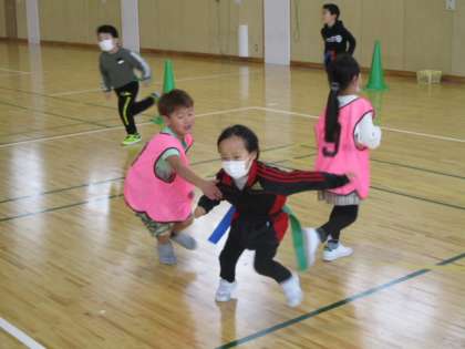しっぽ取りゲームの交流中も、来てくれたお子さんや先生に対し、たくさんの児童が声をかけていました。交流は一方通行ではなく、互いに良い刺激を受ける機会になったと感じました。