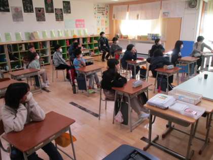 今朝は上学年の「お話会」の日でした。写真は4年生の様子です。みんな集中して聞いていました。