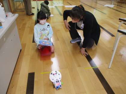 11月7日(月) 今日の授業風景(ひまわり級) 公開日 2022/11/07 更新日 2022/11/07 2年生 2時間目のひまわり級は、2年1組といっしょにおもちゃづくりに取り組みました。 写真は、車の試運転をしているところです。
