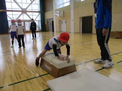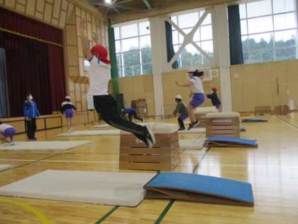 練習をよく見ていると、どうやら跳び箱の後にするマット運動は、跳び箱を跳び越える時に役立つ動きの練習のようでした。