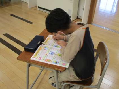 3時間目の3年生は、アルファベットの練習中でした。教室をのぞいた時には、「r」の練習中でした。担任の先生が、「この字を伸ばしすぎると『n』になってしまいます」と、知っているアルファベットと関連づけて説明していました。