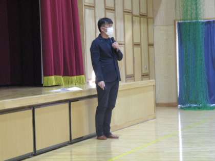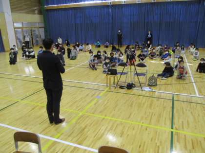 学校保健委員会の最後は講演です。今日は富山福祉短期大学から講師の先生に来ていただきました。講演の最後には、体を動かす楽しい活動も取り入れていただき、あっという間の時間でした。