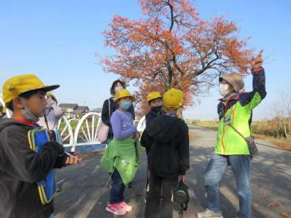 今日は、常西合口用水と常願寺川沿いに校外学習に行きました。上滝の歴史や文化遺産にくわしい方をお招きし、とても分かりやすく教えていただきました。