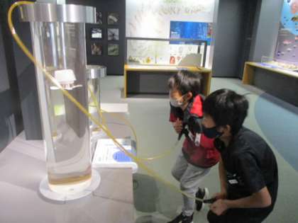 科学博物館には、体験できる展示物がたくさんあります。目をひく大きな展示物を一通り見終えた後には、いよいよ活動開始です。