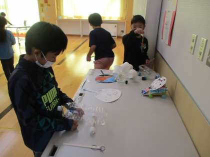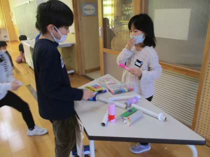 1時間目の2年生は、先日の「カフェ和いわい」で使用した手作りおもちゃ類を修理して、近々実施予定の1年生との交流会に備えました。