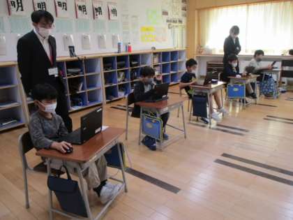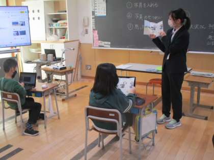 2時間目の3年生は、「ブラ上滝」のプレゼン資料づくりの続きをしていました。今日は、ICT支援員の方に来てもらったので心強かったです。また、文字の入力の様子を見ていると、キーボーを使わなくても手書き文字入力している児童もいました。「さすがデジタルネイティブ世代だ」と感心しました。