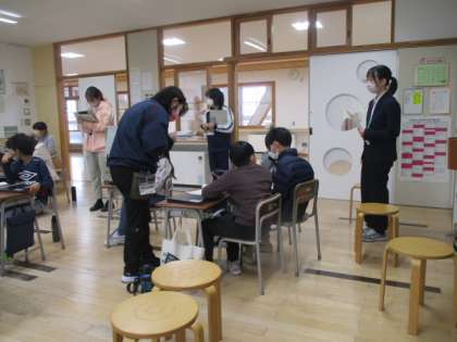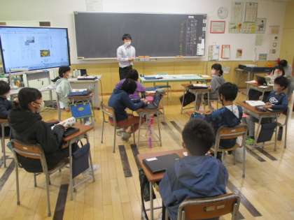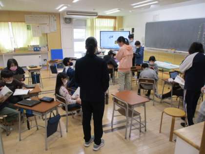 4年生の3時間目は国語の授業でしたが、その授業を使って授業研究を行いました。現在学習中なのは「世界にほこる和紙」という教材で、この授業では子供たちが内容の要約に取り組みます。