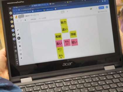 本文の要約を進めるに際し、キーワードとなる重要語句をみんなで確かめます。「やぶれにくい」や「長もち」、「手ざわりがいい」などが挙がりましたが、実感がもてるよう和紙を触ってみました。