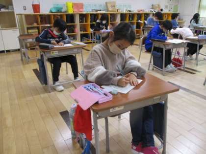 2年生も5時間目は国語の授業で、漢字の書き取りテストに挑んでいました。2年生ともなると画数が多い漢字がたくさん出てきますから、この機会にしっかりと身に付けておきたいですね。