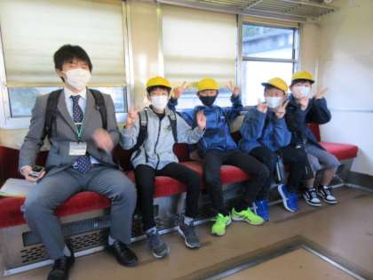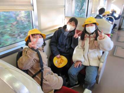 社会科「常願寺川〜あばれ川と生きる〜」の学習で、立山カルデラ砂防博物館などに出かけます。上滝駅から電車に乗り、岩峅寺駅を経由して、立山駅へと向かいます。紅葉が美しく空は青く、最高の1日です。