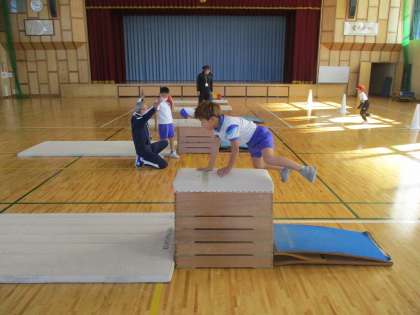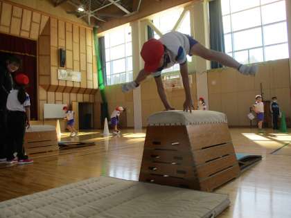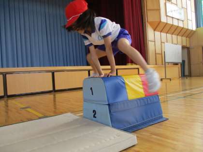 こちらは1年生の様子です。写真の3人は上手に跳んでいます。