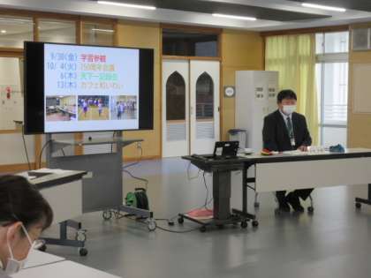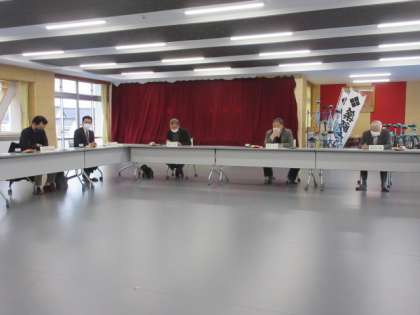会長の挨拶の後、校長から前回の会合後の学校行事等、教頭からアクションプランの集計結果について報告しました。その後は学校側から参加者に、行事の精選・見直しに関して意見を伺いました。また、子供の安全確保という面からサルの対応についても検討し、最後は副会長から「閉会の挨拶」がありました。