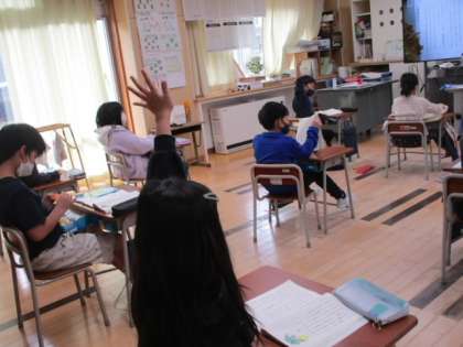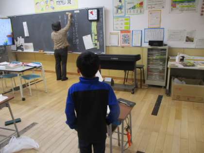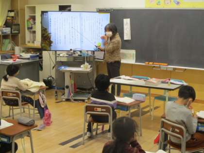 2年生の1時間目は国語の授業でした。今、読みを進めているのは「わたしはおねえさん」という内容です。授業の中では、「えらいおねえさんは、朝のうちにしゅくだいをするんだわ」という内容に関して、何人かの児童が自分の思いを発表していました。