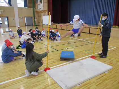 3年生も4年生といっしょに、走り高跳びに取り組みました。1学期から走り幅跳びの練習を続けてきた子供たちですが、今度は助走のスピードを高さに変換しなくてはいけません。また新しいコツを見付けてほしいものです。