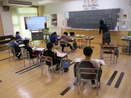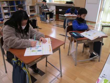 3年生は3時間目にローマ字の練習をしました。教頭先生からローマ字で書くお題が出されました。「まめ」「やま」「ひよこ」「くだもの」「でんわ」などなど。練習しているところを見ていると、「b」と「d」の区別が難しいようです。慣れるまでが大変ですが、がんばっていきましょう。
