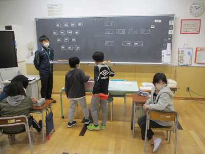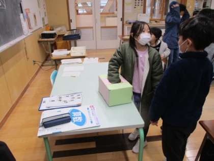 5時間目の4年生は、くじ引きをしていました。何のくじ引きかというと、席替えのくじ引きです。このくじには2つの目的があり、1つは教室の座席、そしてもう1つはランチルーム給食の座席の決定です。