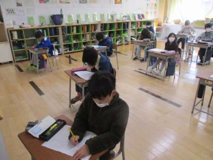 2時間目の4年生は、算数のテストに臨んでいました。勉強してきた成果を、しっかり発揮してくださいね。