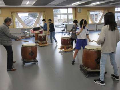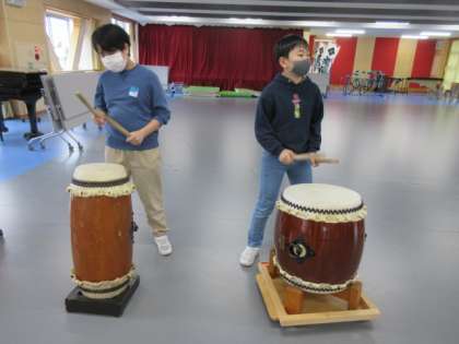 和太鼓の音色が校舎内に響き渡っています。どんどん上達していることが、分かります。