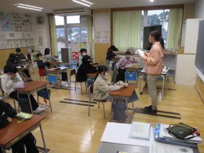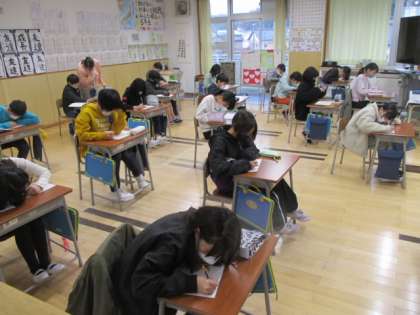 5年生の克己タイムは、前半が担任の先生との個別の面談でした。ここでは、昨日までに済んでいる期末テストの点数を口頭で教えてもらいました。後半は、2学期のまとめとして漢字のプリントに取り組みました。