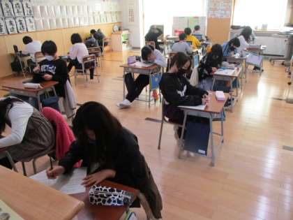 1時間目の5年生は、算数のテストに取り組んでいました。