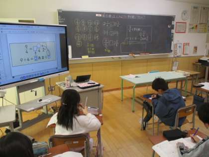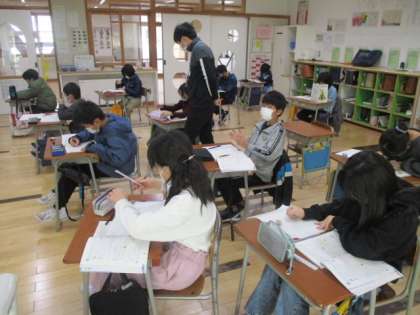 3時間目の4年生は算数の授業でした。今日の学習は、仮分数と帯分数の行き来でした。小学校の学習内容でもかなり難しい方の内容ですが、がんばってしっかりマスターしていきましょう。