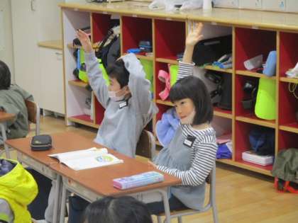 子供たちは「ぶんぼうぐ」を聞かれて元気よく答えていました。