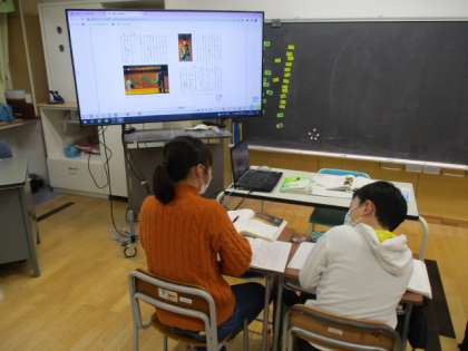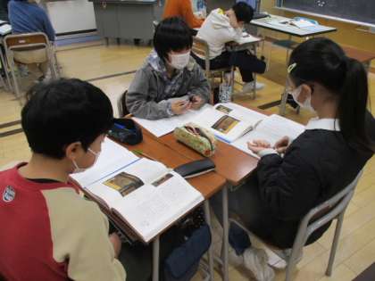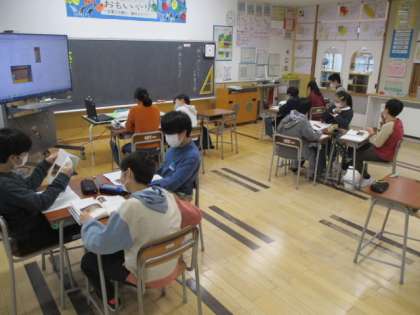 6年生の1時間目は国語の授業で、「柿山伏」の学習が続いていました。取り組んでいたのは内容の要約でした。内容をよく理解し、それを上手に表現する課題ですから、難しい内容です。集中して更によく考える必要がありそうです。