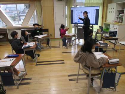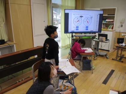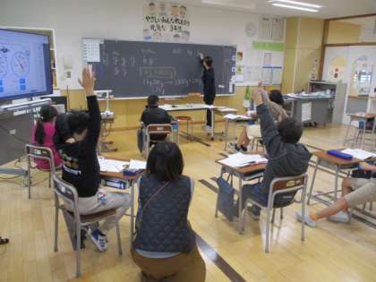 1時間目の3年生は算数の授業でした。今日学習していたのは、重さの表し方です。はかりの目盛を読み取って、「○kg○g」と答えていました。