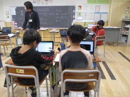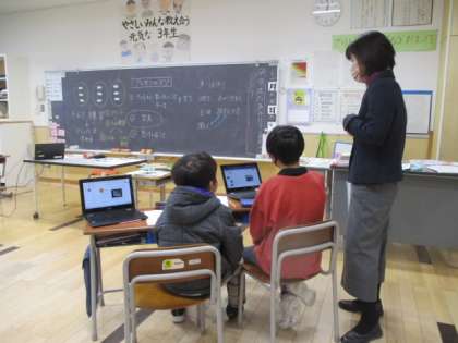 3年生の4時間は、総合的な学習の時間でした。「ブラ上滝」のプレゼンテーションを課題とし、この授業では来週の発表に向けての練習をしました。