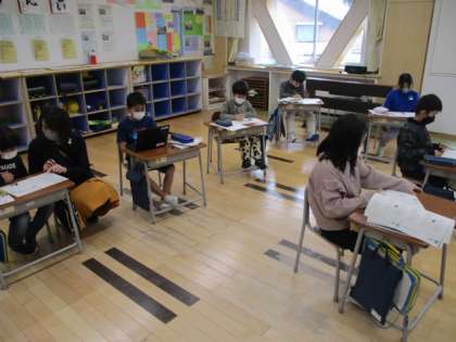 2時間目の3年生は算数の授業でした。学習内容は2学期のまとめです。今日の午前中に期末テストが予定されていますので、その最終調整といったところです。まとめのプリントを使って、各自が自分のペースで学習を進めていました。