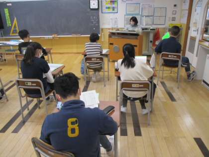 朝の6年生教室をのぞいてみると、「Dream & Dream 〜夢をつなごう〜」という合唱曲を聴いていました。今後、練習していくのかな?