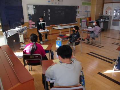 3年生は冬休みの生活について、プリントを使って確認をしました。