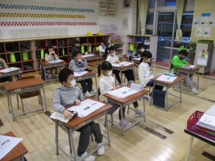 写真を撮ろうと教室を移動していると、手を振り何かしら一生懸命にアピールしてくる児童がいましたが、近づいて見てみると100点でした。その時のその児童の誇らしげな顔、本当にうれしかったんでしょうね。とってもよかったね。