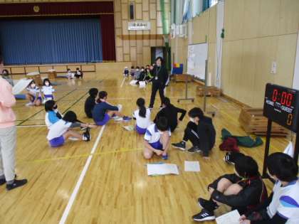 体育館は大変冷え込んでいましたが、準備運動で体を温めた後、同じ様な課題に挑戦する小グループを作って練習に取り組みました。