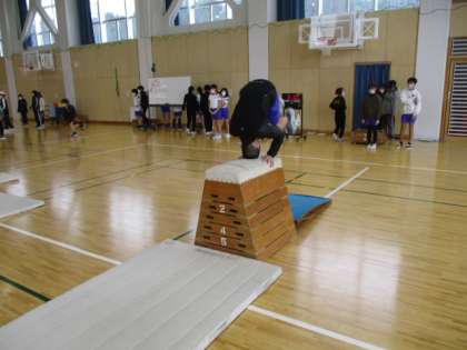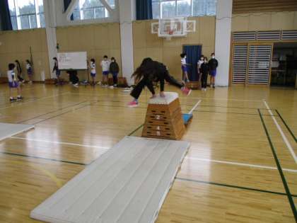 2時間目の5・6年生は合同体育で、跳び箱に取り組みました。