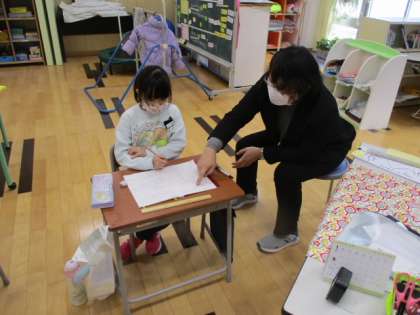 ひまわり級では、冬休みの宿題の確認をしているところでした。
