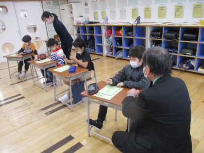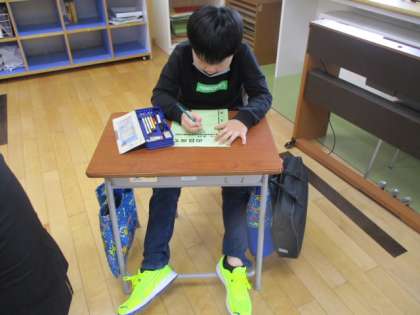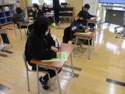 3年生教室では、3学期にがんばりたいことをプリントに書いているところでした。