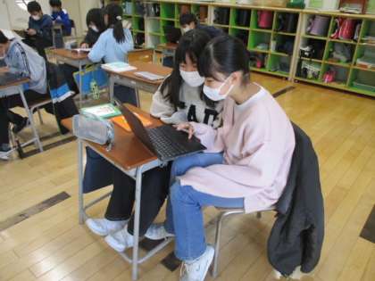 4時間目の4年生教室では、伝統工芸について書いている壁新聞の作業をしていました。