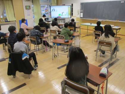 今朝は、3学期に入って初めての「お話会」が上学年で行われました。上の写真3枚は、4年生の様子です。教室をのぞいた時には、ハリネズミの話の真っ最中でした。